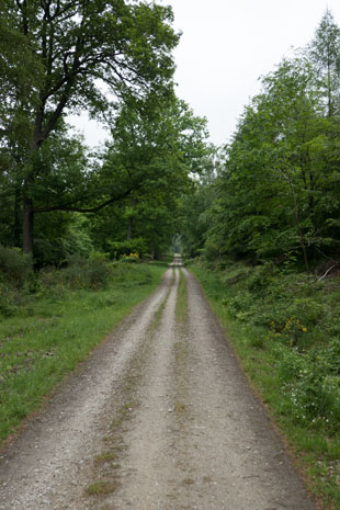 Diesem Forstweg, der in etwas schlechtem Zustand ist, folgen wir durch den Wald, berühren kurz die L333 und fahren dann sehr lange über einen schnurgeraden Forstweg, der exakt deckungsgleich mit dem Verlauf des Limes ist. Zwischendurch fordert uns ein kurzer, steiler Anstieg von 20%, der mit Gepäck nur schiebend bewältigt werden kann.