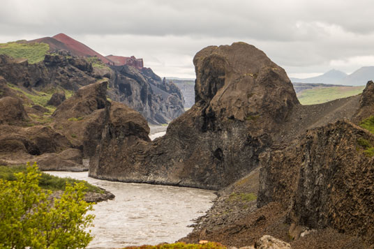 Über ein verzweigtes, hervorragend beschildertes und sehr bequemes Wegenetz könnt ihr das Terrain erkunden. Ab dem Parkplatz folgt ihr in Richtung Norden einem knapp zweistündigen Rundweg mit Rauðhólar als nördlichsten Punkt. Besonders interessant ist der Weg in Flussnähe. Er präsentiert die unterschiedlichsten Basaltgebilde in Form von Türmen bis hin zur Lavahöhle Kirkja (Kirche). Spektakulär sind die Blicke auf die pittoresken Basaltformen unmittelbar am Fluss. Eine phantastische Landschaft, wie aus einem Fantasyfilm. Uns erinnerte die Gegend oft an Mordor aus "Herr der Ringe" und wir hätten uns nicht gewundert, wenn plötzlich einige Orks auftaucht wären.